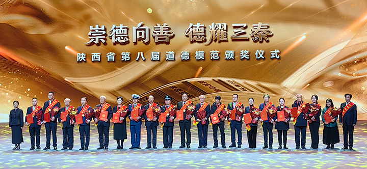 我校终身教授张登本(左数第九位)荣获陕西省第八届道德模范称号