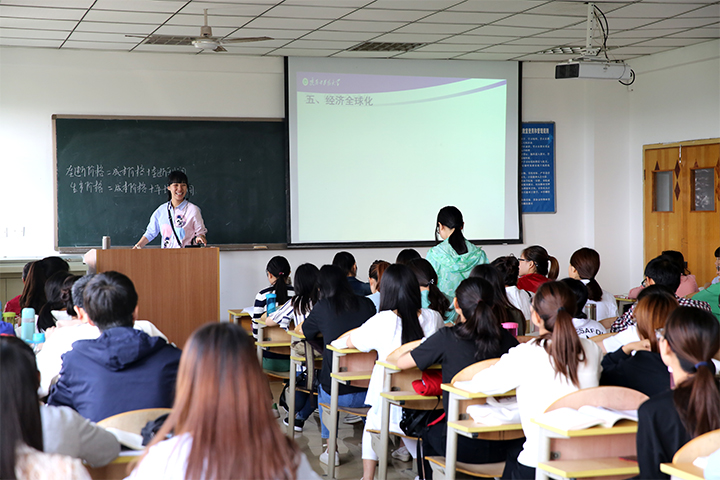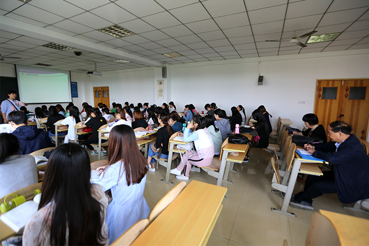座谈结束后,张院长陪同专家在4号教学楼4420教室听了由贾敏老师讲授的《马克思主义基本原理概论》课。