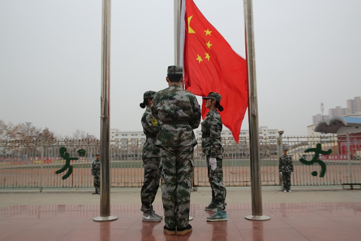 上午,校团委在图书馆南门国旗台前举行升旗仪式,悼念三十万死难同胞以及在日本帝国主义侵略战争中惨遭杀戮的死难者。国旗护卫队的旗手们踏着整齐的步伐护送国旗入场,伴随着庄严的国歌声,鲜艳的五星红旗冉冉升起,全场都沉浸在追思同胞、反思历史的氛围中。