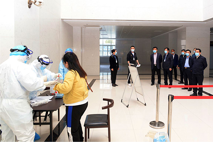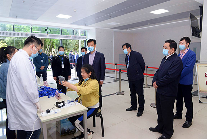 4月27日上午,我校第一批通过学校审核符合返校条件的研究生陆续返校报到。校党委书记刘力,校长孙振霖,党委副书记于远望,副校长唐志书、杨晓航再次来到第一临床医学院,实地察看研究生返校报到工作开展情况,第一临床医学院领导班子成员以及相关职能部门负责人陪同检查。校领导现场对入院扫码区、体温测量区、信息登记区、核酸标本采集区、学生就餐区等全流程检查,细致了解返校研究生的信息核对、扫码登记、体温检测、行李消杀等工作。